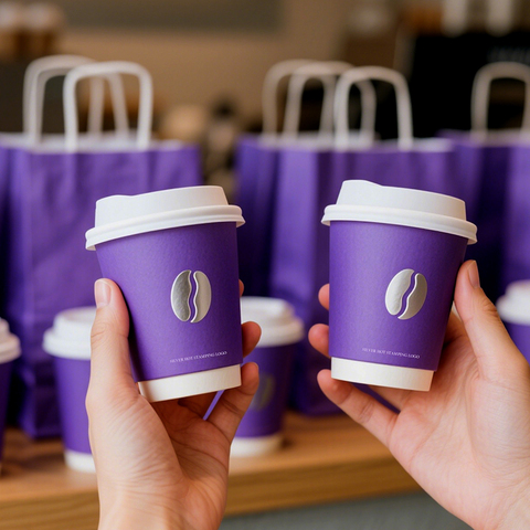 Taza de papel para batidos de leche, tamaños personalizados, 12 oz, 24 oz, doble pared, púrpura, elegante, grande, bebidas frías, taza de papel con tapa para café, té
